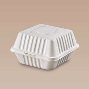 Unsere plastikfreie Bagasse Burger-Box ist zu 100 % recycelbar und biologisch abbaubar. Sie ist temperaturbeständig bis +100 °C und daher für die Mikrowelle genauso geeignet wie für den Einsatz im Kühlschrank. Unsere Menü-Boxen sind stabil, wasserabweisend, fettresistent, schließen dicht ab und eignen sich daher optimal zum Transport auch von Soßen lastigen Speisen und Take-away Gerichten. Die servierten Speisen, egal ob heiß oder kalt, werden dank Geruchs- und Geschmacksneutralität nicht beeinflusst.
